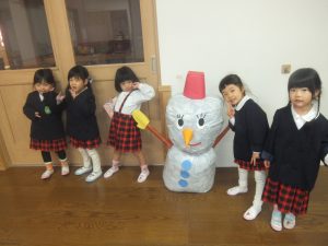 みんなで完成した雪だるまちゃんと写真撮影💖