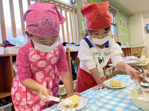 1/20(水)にぞうぐみさんのクッキングがありました🐘🍰