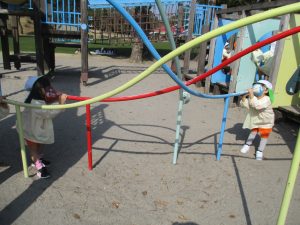 公園に着いてからは、早く遊具で遊びたくて「早く遊びたい~」「ここ来たことあるよ!」と話している姿が見られました(*^▽^*)