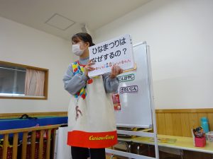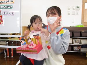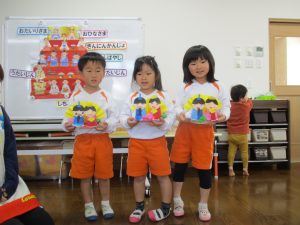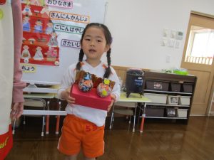 人形紹介が終わると次は、お友だちが制作したひな人形を紹介してもらいました。