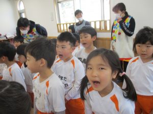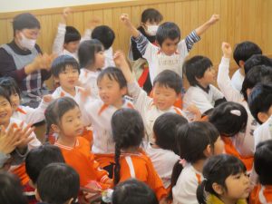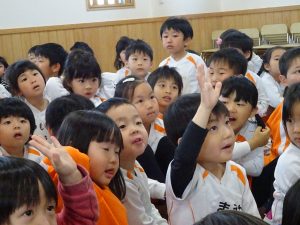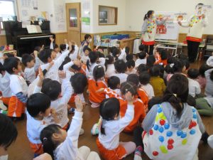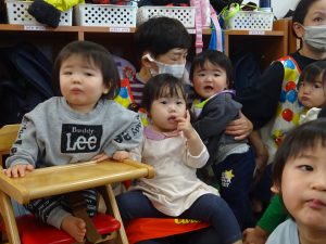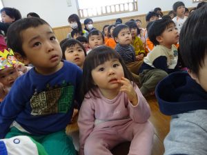 まずは、絵本を読むと集中して見ている子どもたち。しっかりと座ってかっこいいですね。( ´∀` )