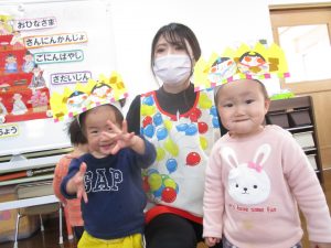 昨日はひなまつりでしたね。園ではひなまつり会をしました。