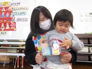 ひな人形のお名前を聞くと自信満々で答えてくれるお友だち!知っているひな人形の名前があるととても嬉しそうでした。(*^^*)