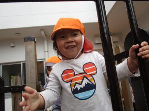 久しぶりのお外に、ニコニコ笑顔の