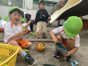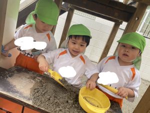 たくさん手で集めたり、しゃぼん玉に大興奮でした(*’▽’)♡