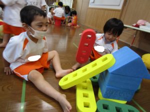 中でも人気の大型ブロックでは、トンネルやお家を作ってみたり