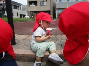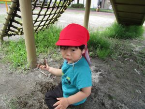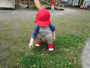 遊具以外にもお花を摘んだり、石を拾うなど公園での遊びを満喫していました。
