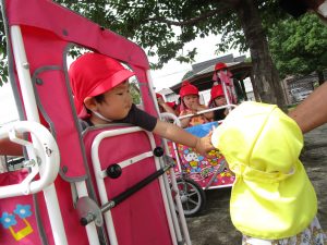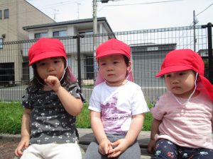 帰る際、他の園のお友だちに「バイバイ」とハイタッチ。