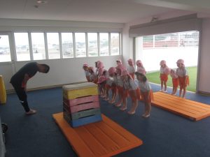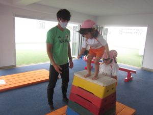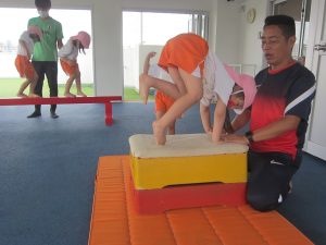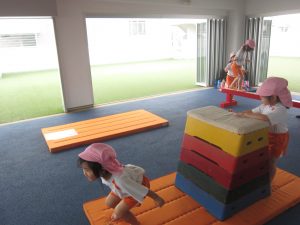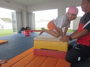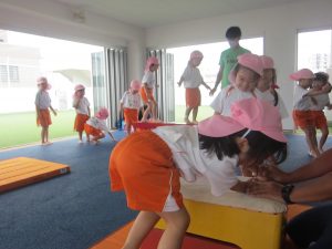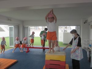 今日は週に1回の体操教室でした。マットや平均台、跳び箱を使って体を動かします!