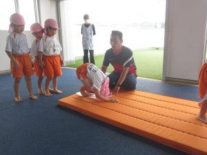▽両手と両足を揃えてでんぐり返し!頭を中にぐっと入れて上手にできていますよ。