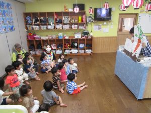 お楽しみは、大型絵本「やさいさん」次々と出てくる大きな野菜に興味津々な子どもたちでした(●^o^●)