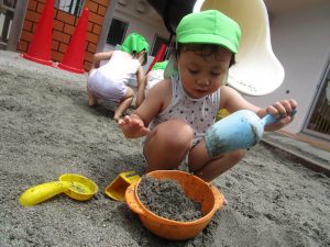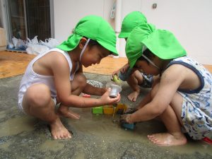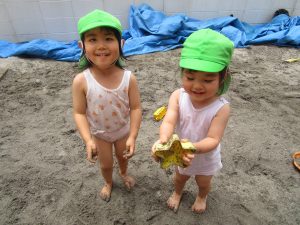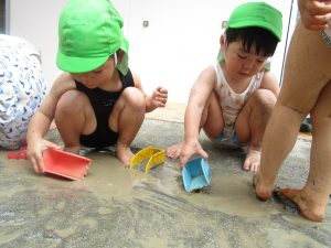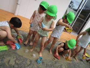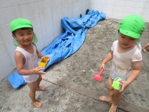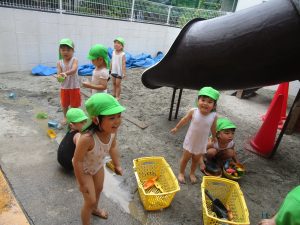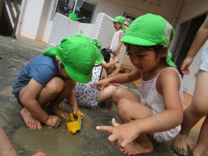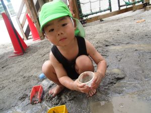 園庭のお砂が泥んこになり、最初は控えめだったはずが