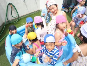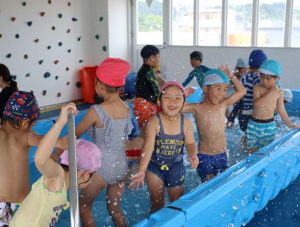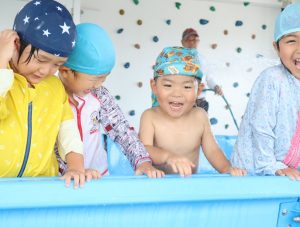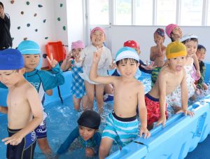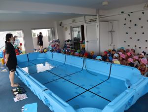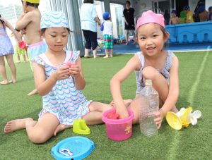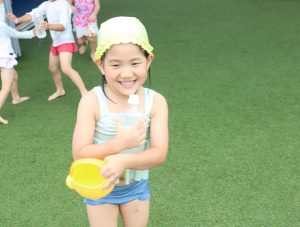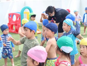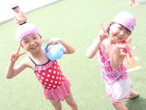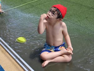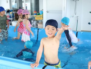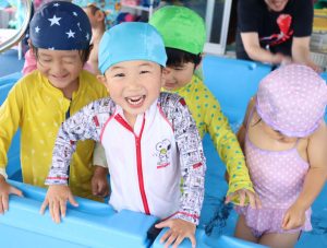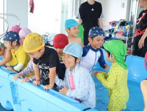 「今日はプール~🎵」と嬉しそうな顔で