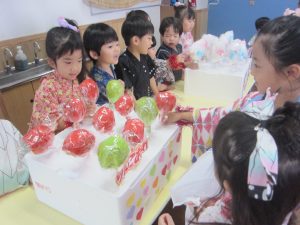 以上児のお友だちは、この日の為に出店屋さんの品物作りや