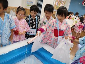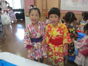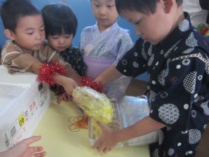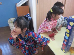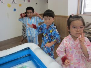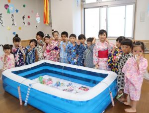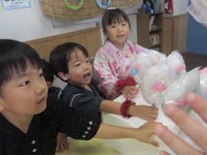 いつもとは違う甚平姿での登園に期待も膨らんでいる様子の