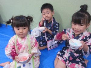 本物のかき氷も食べることができ、満足そうな子どもたち(^▽^)/
