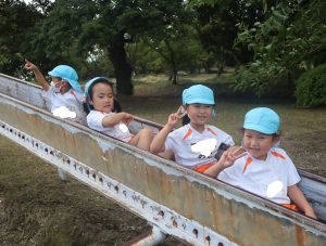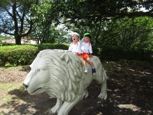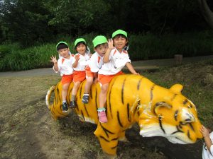 ぱんだ・きりん組さんは、恐竜やライオンに乗ってご満悦♡