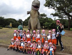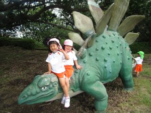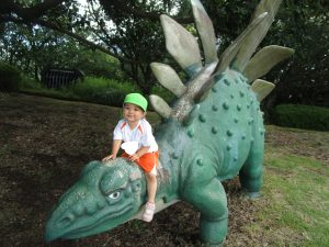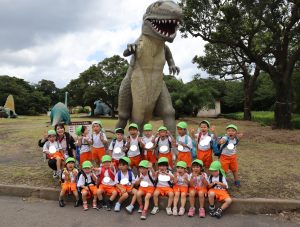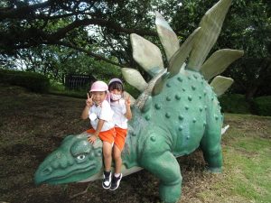 大きな恐竜に出迎えられ、子どもたちの興奮も一気に上昇\(^o^)/