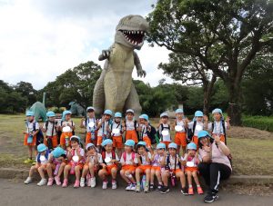 恐竜の前でみんなで「「ガオーーーーーー🦖🦕!!!」」のポーズ📸