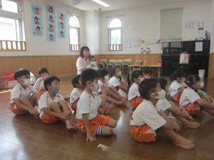 かっこいい姿勢で園長先生のお話を聞いていました😊