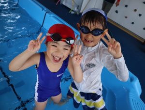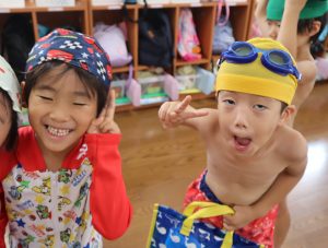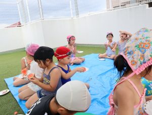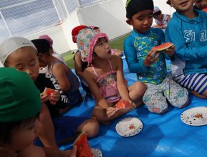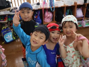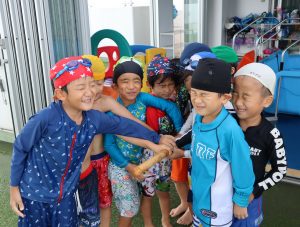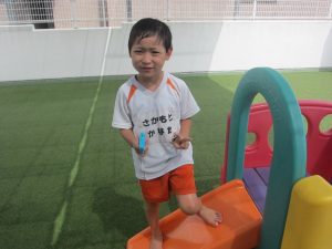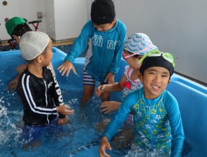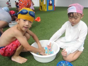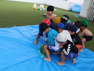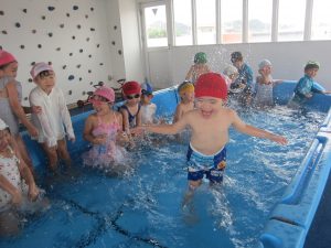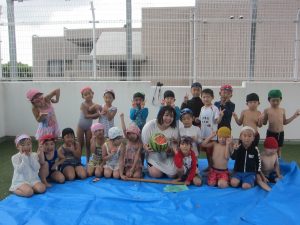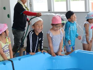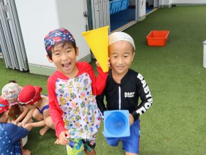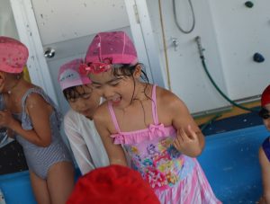 先生やお友達と水かけっこの戦い(笑)をしたり