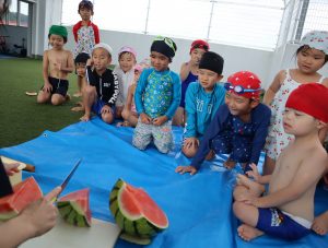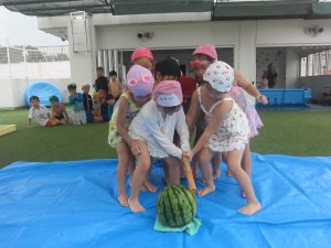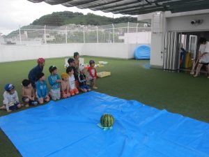 みんなで息を合わせ、スイカにあたりました💗