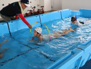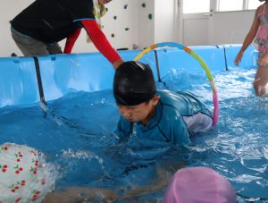 大プールで輪っか潜りをして泳いだり