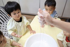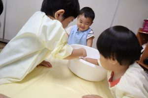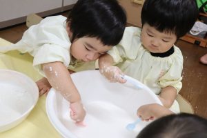 今日はかたくり粉を使って遊びました\(^o^)/