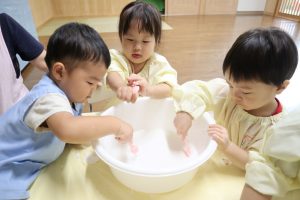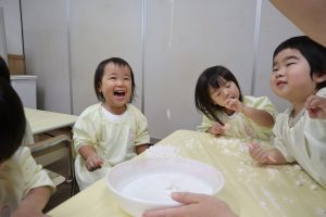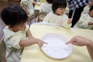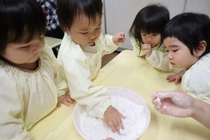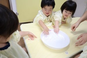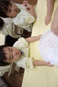 今日はかたくり粉を使って遊びました\(^o^)/