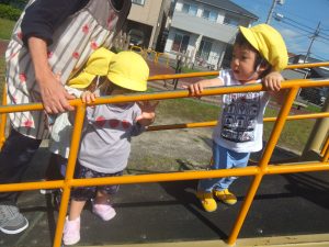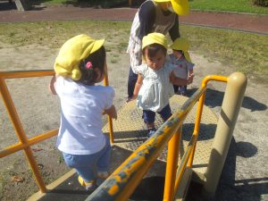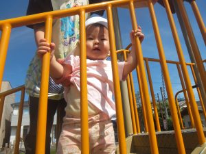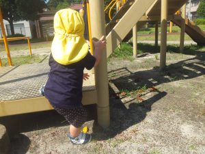 滑り台やシーソーに乗ってみたりと