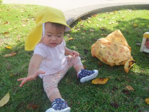 また、葉っぱをみつけて感触を楽しんだり、
