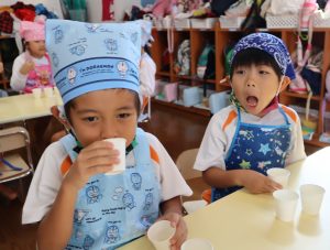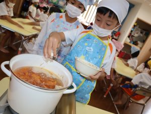 今日の給食は、みんなで作ったすまし汁に