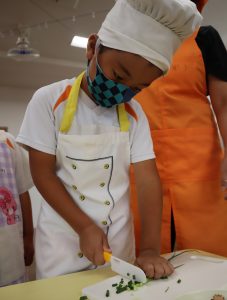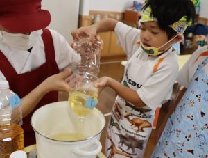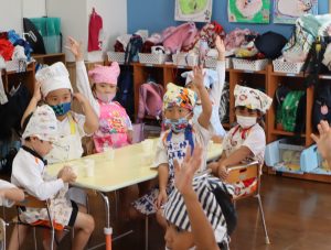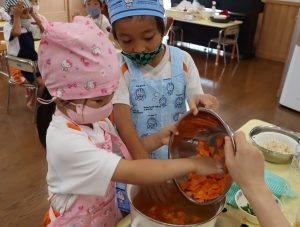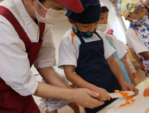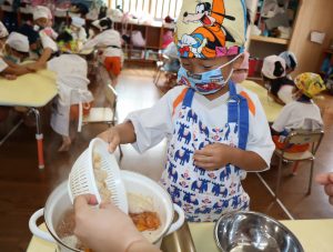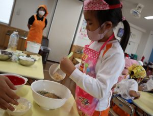 給食の先生の話をしっかり聞いて