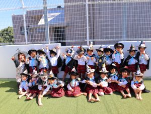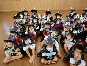 今年のテーマは、‘‘ハリーポッター‘‘ということで、子どもたちは、とんがり帽子とマントをつけて、魔法使いに仮装しましたよ😊🌟
