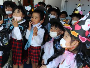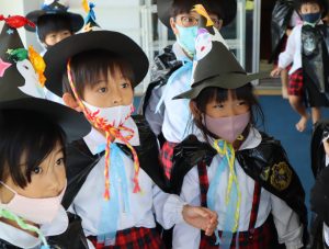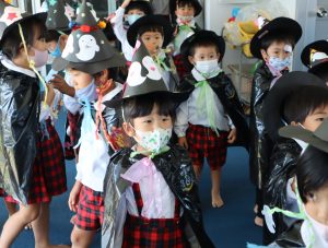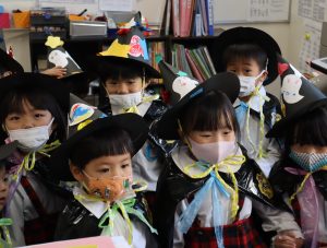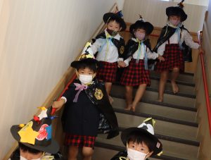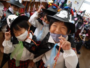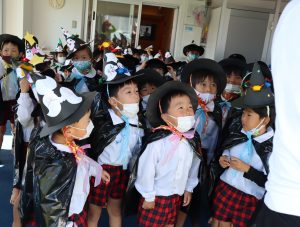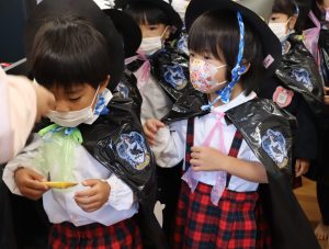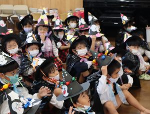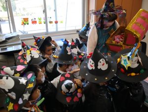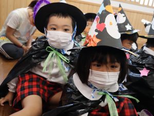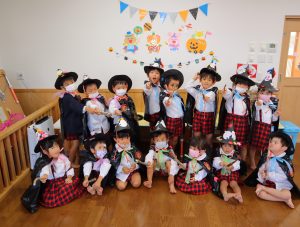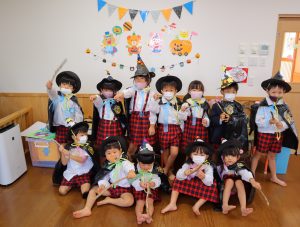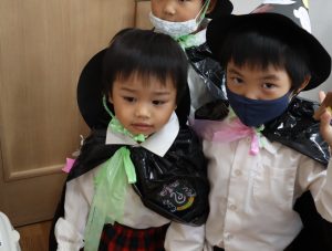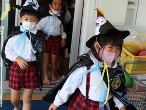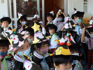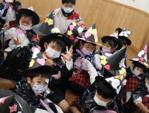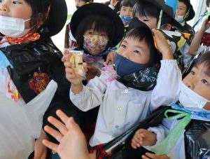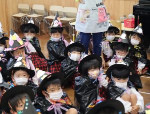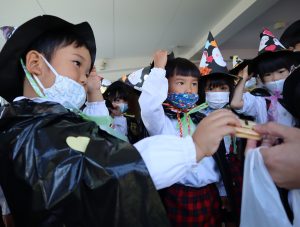 お楽しみ会後は、職員室の先生たちにお菓子をもらいに行きましたよ🎵「トリックオアトリート」と言いながら、大好きなお菓子を貰う子どもたちでした💛