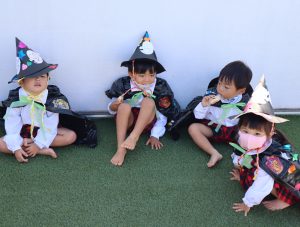 お楽しみ会では、ハロウィンにちなんだ指遊びや絵本、英会話で学んでいる英単語のクイズを行い、子どもたちは興味津々💚元気よく答えてくれましたよ🥰