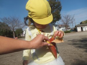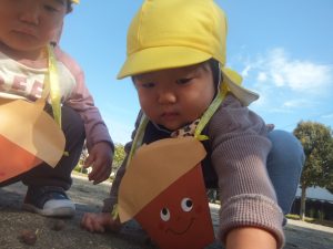 上手に指先を使ってどんぐりを掴む姿が見られましたよ(*^^*)