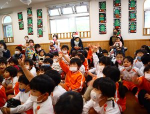 初めにクリスマスの由来を聞き、クリスマスについて少し賢くなった子どもたち。