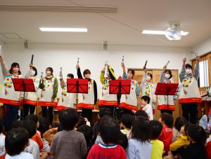 先生たちからのプレゼントは、トーンチャイムという楽器を使ってジングルベルを演奏!