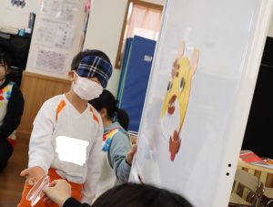 お楽しみの1つ目は❝12支のはじまり❞のおはなしをペープサートで聞きました\(^o^)/