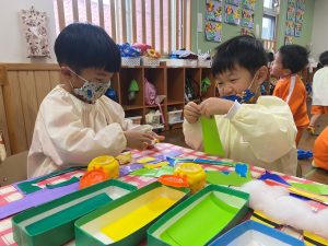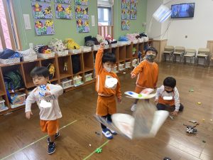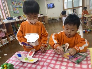 鬼のお面や豆入れの制作をしたり・・・