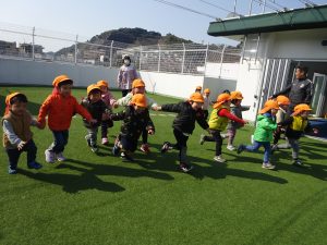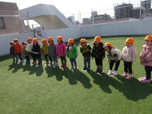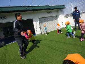 体操教室の後はお散歩へ行きました。お散歩の途中でアンパンマンと遭遇!(^^)