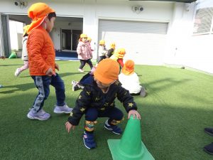 コーンをタッチして元の場所に戻ってみたり、コーンを飛び越えてみたりと体を動かして喜ぶ姿が見られましたよ。( ´∀` )