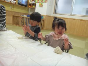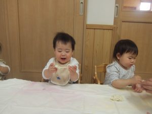 今日のひよこぐみさんは、初めて❝小麦粉粘土❞に