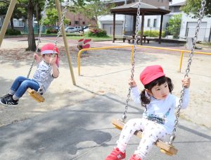 対話的な学び(2人でブランコにのりながら視線や表情等の非言語的対話をしています。)