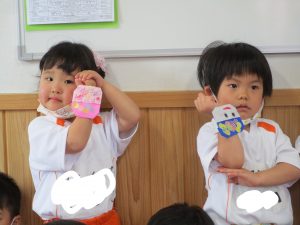 最後に腕輪にくっつけると、お友だちと完成した