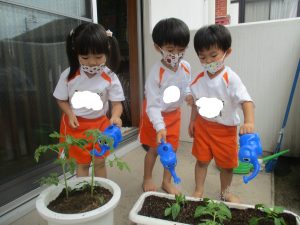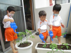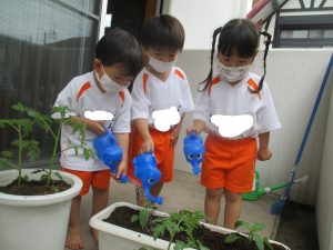 愛情を込めながら、ジョーロでたくさんお水も
