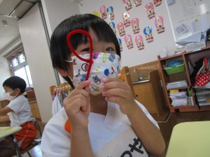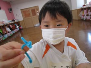 今日は、シャボン玉遊びの前にある製作をしました\(^o^)/