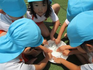 ❝端っこと端っこをねじったら丸くなるよ!❞と一人の子が