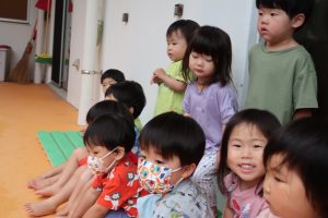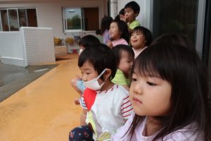 「雨はどんな音がするのかなぁ。」と耳を澄ませる子どもたち(^^♪
